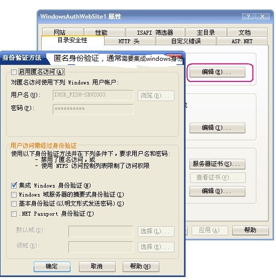 5.基本身份验证:其实也是基于windows操作系统的账户验证的。