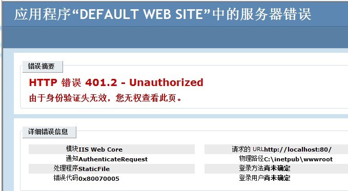 如果你在弹出框中,输入正确的windows账户和密码,则可以正常的浏览你请求的网页。如果你不输或者输错了,等待你的将是401错误(401,你懂得)。