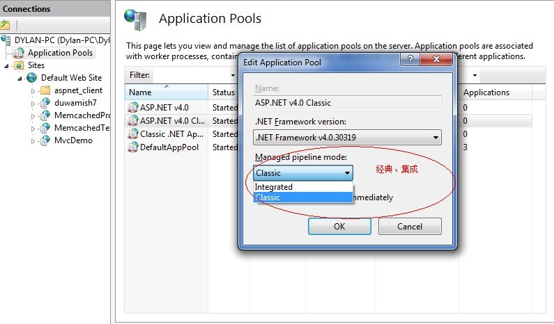 您可能感兴趣的文章:- IIS7.5应用程序池集成模式和经典模式的区别介绍
