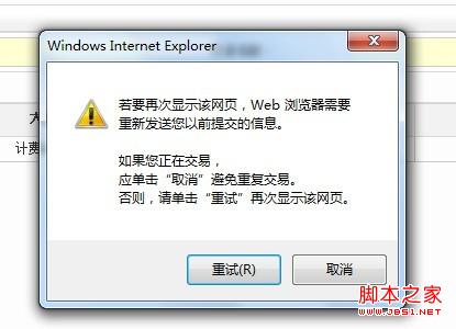 关闭模式窗口后,需要刷新父页面,但是模式窗口关闭后,父页面总是会弹出“重试”消息框,如下图所示: