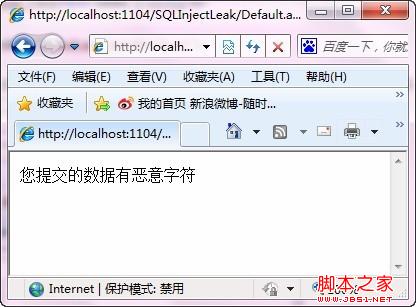 Response.Write("您提交的数据有恶意字符");
