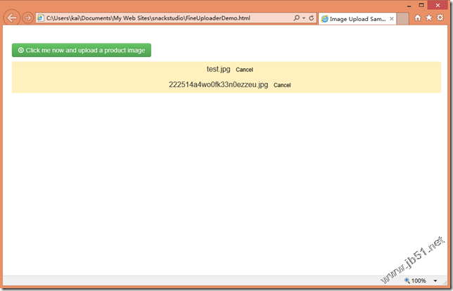 ok.这时基本关于Fine Uploader客户端初始化和控制操作选项基本完成.当我们需要上传操作时.如果IsAuto=false时可以通过已经定义qq.FineUploader对象的uploadStoreFiles()方式手工触发上传操作: