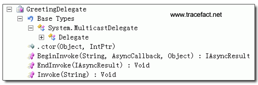如你所见,委托GreetingDelegate出现的位置与 string相同,string是一个类型,那么GreetingDelegate应该也是一个类型,或者叫类(Class)。但是委托的声明方式和类却完全不同,这是怎么一回事?实际上,委托在编译的时候确实会编译成类。因为Delegate是一个类,所以在任何可以声明类的地方都可以声明委托。更多的内容将在下面讲述,现在,请看看这个范例的完整代码: