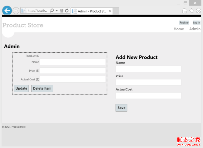 现在我们转入客户端,并添加一个能够使用从Admin控制器而来的数据的页面。通过给控制器发送AJAX请求的方式,该页面将允许用户创建、编辑,或删除产品。