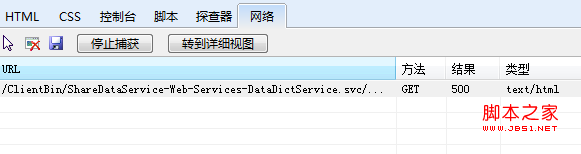此时我们应该查看是哪一个请求引起的错误,方法就是使用浏览器的开发者工具:IE8以上按f12,chrome按下ctrl+shift+I,转到“网路”,开始捕捉: