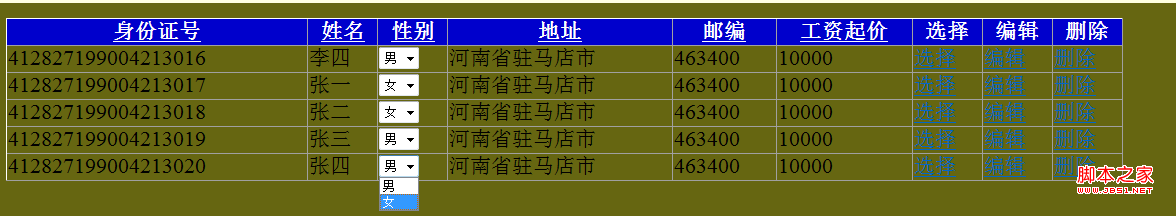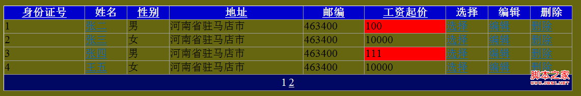 GridView突出显示某一单元格(工资低于10000元)