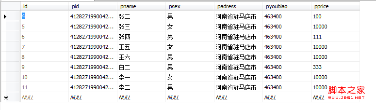 asp:BoundField DataField="pid" HeaderText="身份证号" SortExpression="pid" />