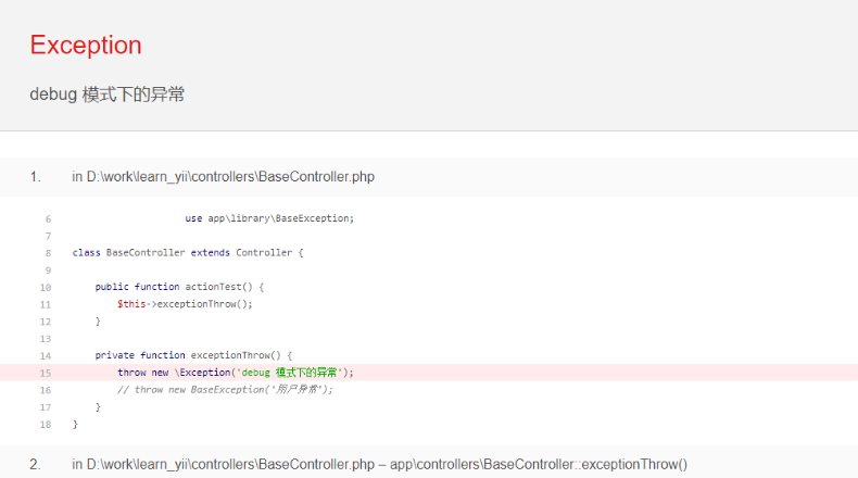 在 ThinkPHP 或者其他框架中,如果出现异常,则会出现框架的一个异常页面。