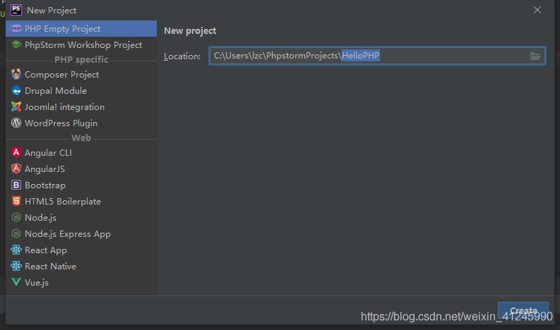 3.1、使用PhpStorm新建工程"HelloPHP"