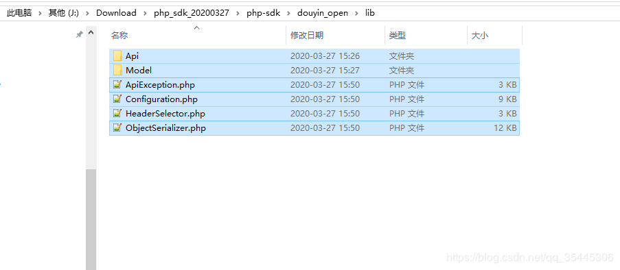 3.将解压出来的php-sdk/douyin_open/lib目录里面的所有文件和文件夹全部复制到刚才新建的Douyin\Open目录下