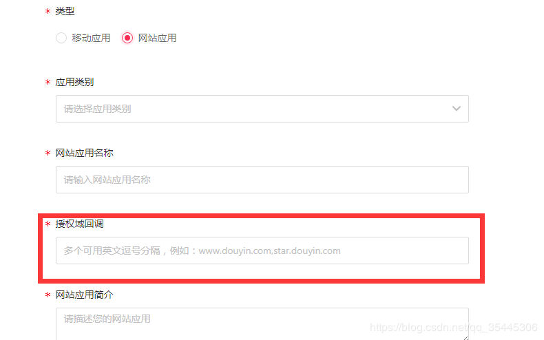 申请的应用为移动应用,实际调用为网页应用web扫码,网页应用在申请的时候有个授权域回调的配置,就是填写回调域名的