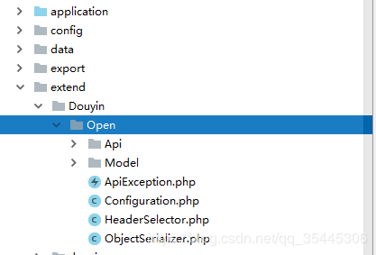 2.在thinkphp项目的根目录(与application目录同级)下的extend目录下新建Douyin目录,再在Douyin目录里新建Open目录