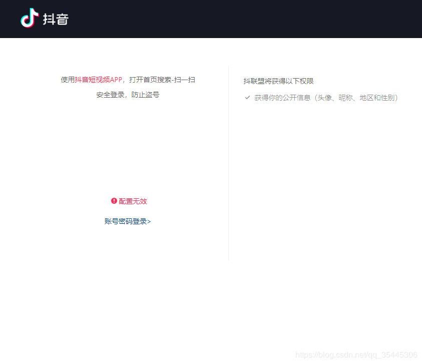 调用授权登录接口https://open.douyin.com/platform/oauth/connect?client_key=xxxresponse_type=codescope=user_inforedirect_uri=redirect_uristate=1提示授权失败或配置失效