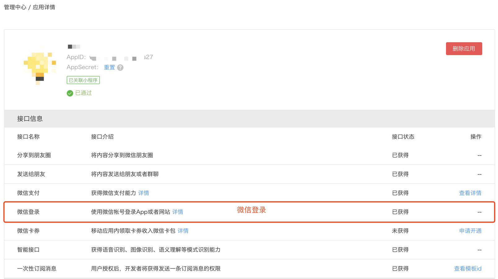 | secret | 是 | 应用密钥 AppSecret,在微信开放平台提交应用审核通过后获得 | |