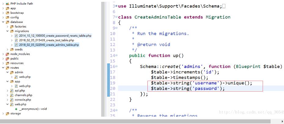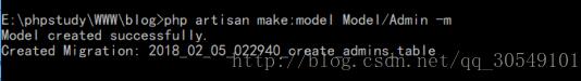 php artisan make:model Model/Admin -m