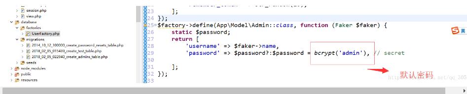 define方法里面写自己的用户模块的命名,里面加上默认密码。