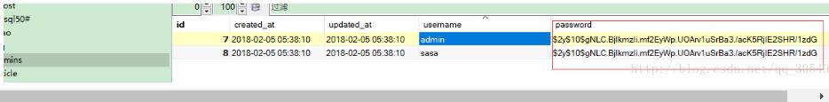 运行之后数据库中新增了admins表