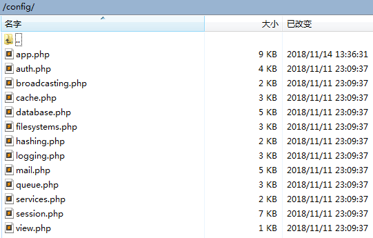 Laravel 所有的配置文件都放在根目录 /config 下面: