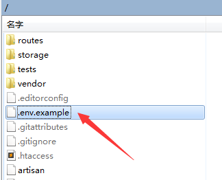 少了这么一个key,再次百度,我的做法是:把根目录.env.example这个隐藏文件重命名为.env