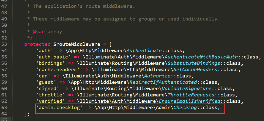 'admin.checklog' => \App\Http\Middleware\Admin\CheckLog::class,