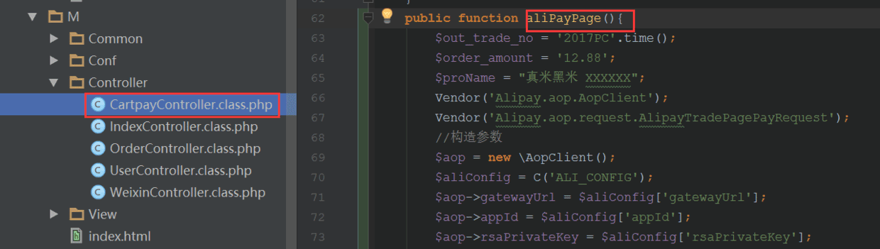 对于支付宝的配置信息,我写在 Application/Common/Conf/config.php中