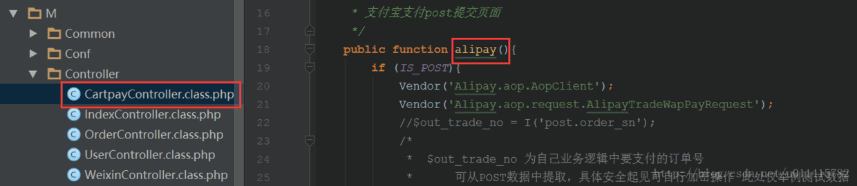 在请求唤醒支付宝支付的路径中进行接口代码的编辑