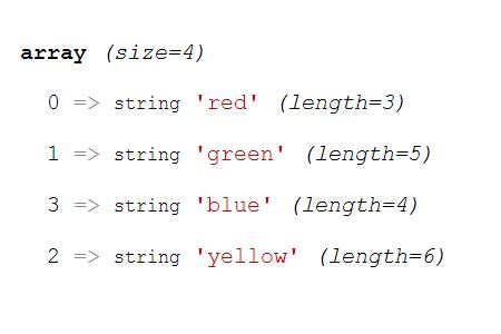 $x = array("0" => "red", "1" => "green","2" => "yellow");