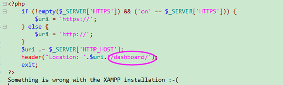 打开xmapp下htdocs文件夹下 index.php文件 配置文件中默认跳转到本文件夹