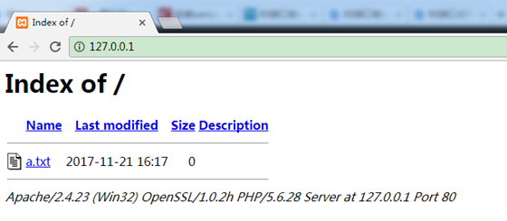 测试本地Apache服务器是否开启:浏览器中输入127.0.0.1 回车即可进入xmapp官网