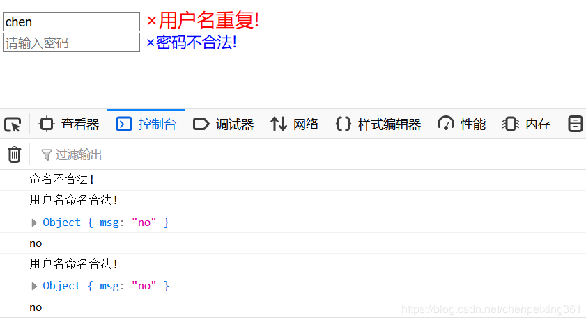 //还要和后台进行验证,验证用户名是否重复,使用Ajax动态交互