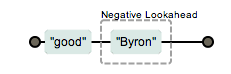 (/good(?!Byron)/).exec('goodByron123'); //null(/good(?!Byron)/).exec('goodCasper123'); //['good'](/bad(?!Byron)/).exec('goodCasper123');//null
