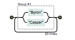 如果希望匹配Byron或Casper出现20次该怎么办呢?可以使用字符 | 达到或的功效