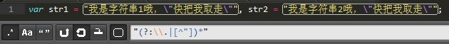 转义的规则是 \ 后面跟着一个字符,所以我们用 \\. 去匹配它,就有了这样的正则 /"(?:\\.|[^"])*"/g