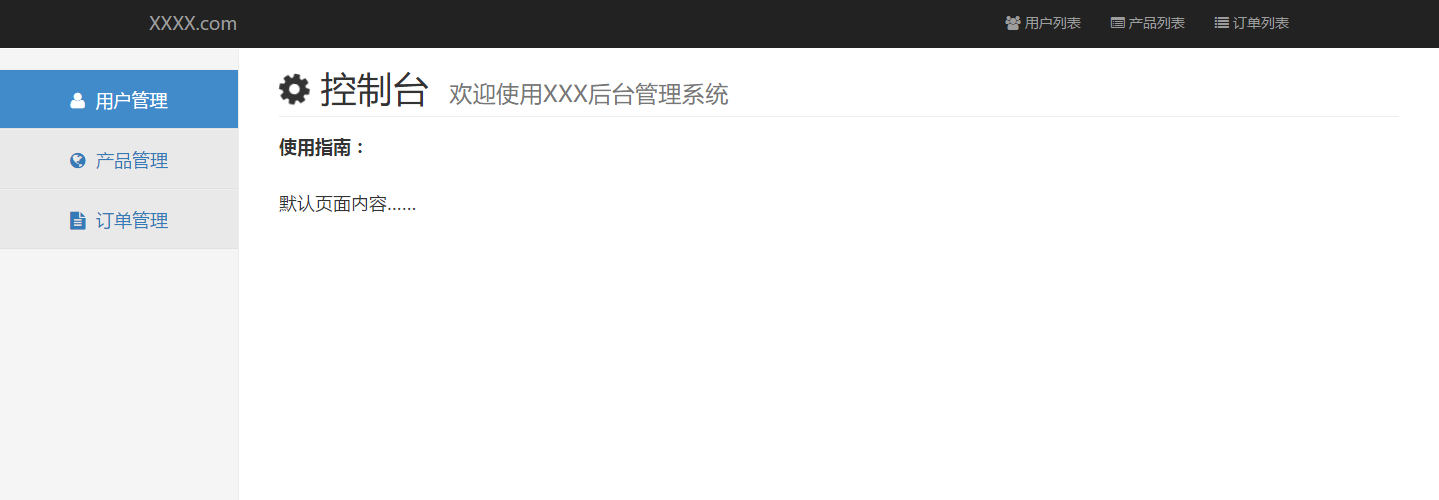 h1 class="page-header">i class="fa fa-cog fa-spin">/i>nbsp;控制台small>nbsp;nbsp;nbsp;欢迎使用XXX后台管理系统/small>/h1>