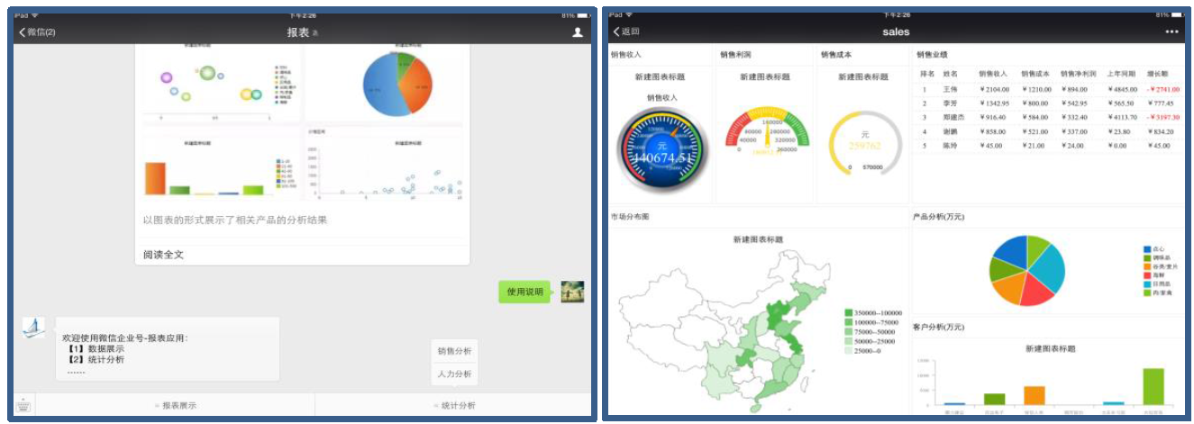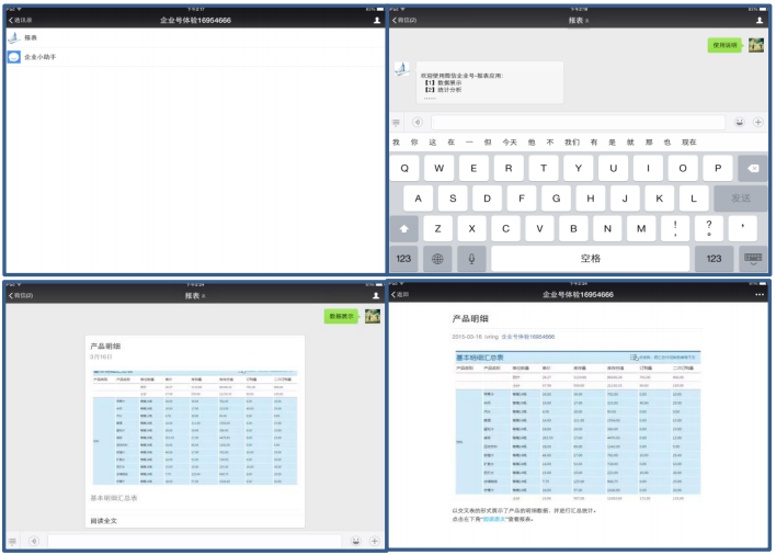 6、 登录个人微信关注企业号,进入报表应用( 下面截图是 ipad ipad )
