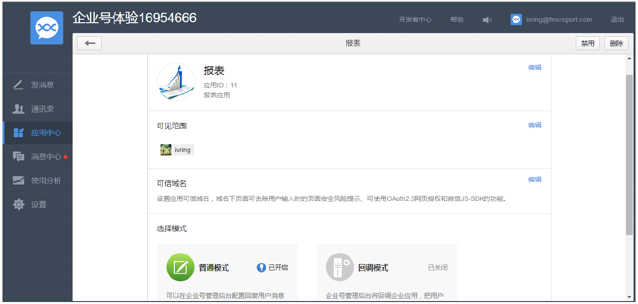 2、 添加一个报表应用( 也可以直接用 那个企业号小助手应)