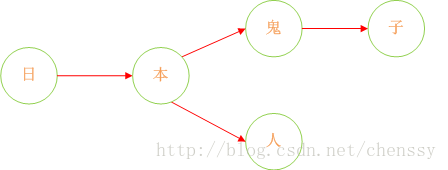 首先:query 日 ---> {本}、query 本 --->{人、鬼子}、query 人 --->{null}、query 鬼 ---> {子}。形如下结构: