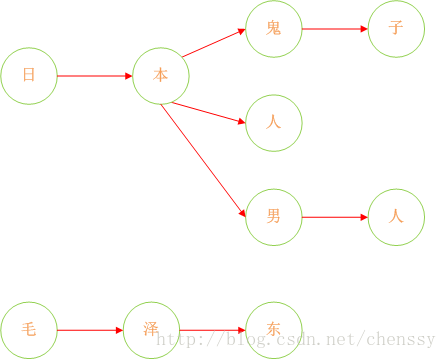 诚然,加入在我们的敏感词库中存在如下几个敏感词:日本人、日本鬼子、毛.泽.东。那么我需要构建成一个什么样的结构呢?