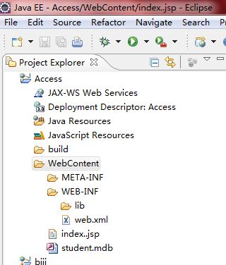 老师决定期末考试采用access数据库实现增删改查,我认为现在的我已经没有问题了,但是以前都是在JSP页面中连接access数据库,无论是以下的那种方式都进行了连接的练习,但是现在我想让我的项目中的访问access数据库的java代码,封装到DAO中,在DAO中连接数据库,没有和Servlet API有任何的关系。对于大多数人都会优先选择使用ODBC数据源的方式或者是使用绝对路径的方式连接access数据库,但是我个人认为,这样做不太好,如果采用这样的方式,项目做好后,放到他人的服务器上是无法运行的,因为数据库的信息不存在了,而我现在的想法是无论项目放那一台支持jdbc-odbc机器的服务器上都可以连接数据库,并运行项目,所以要完成这样的操作,只有在让access数据库的mdb文件随着项目的移动而移动,因此,在Java Web项目,将mdb文件放入到WebRoot下或者其子目录下。但是在DAO中如何得到该mdb的真实路径呢?