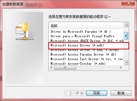 2、在“系统DSN”选项卡中,单击“添加”按钮,打开创建数据源对话框,选择Access数据库的驱动程序“Microsoft Access Driver(*.mdb)”如图所示: