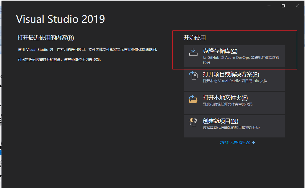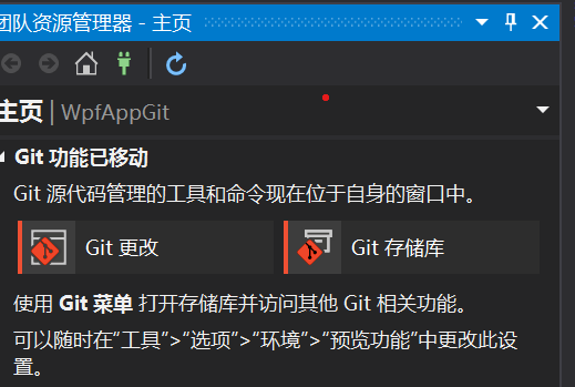 2.Visual Studio 2019 V16.8之前的版本中Git功能还是在团队资源管理器中。