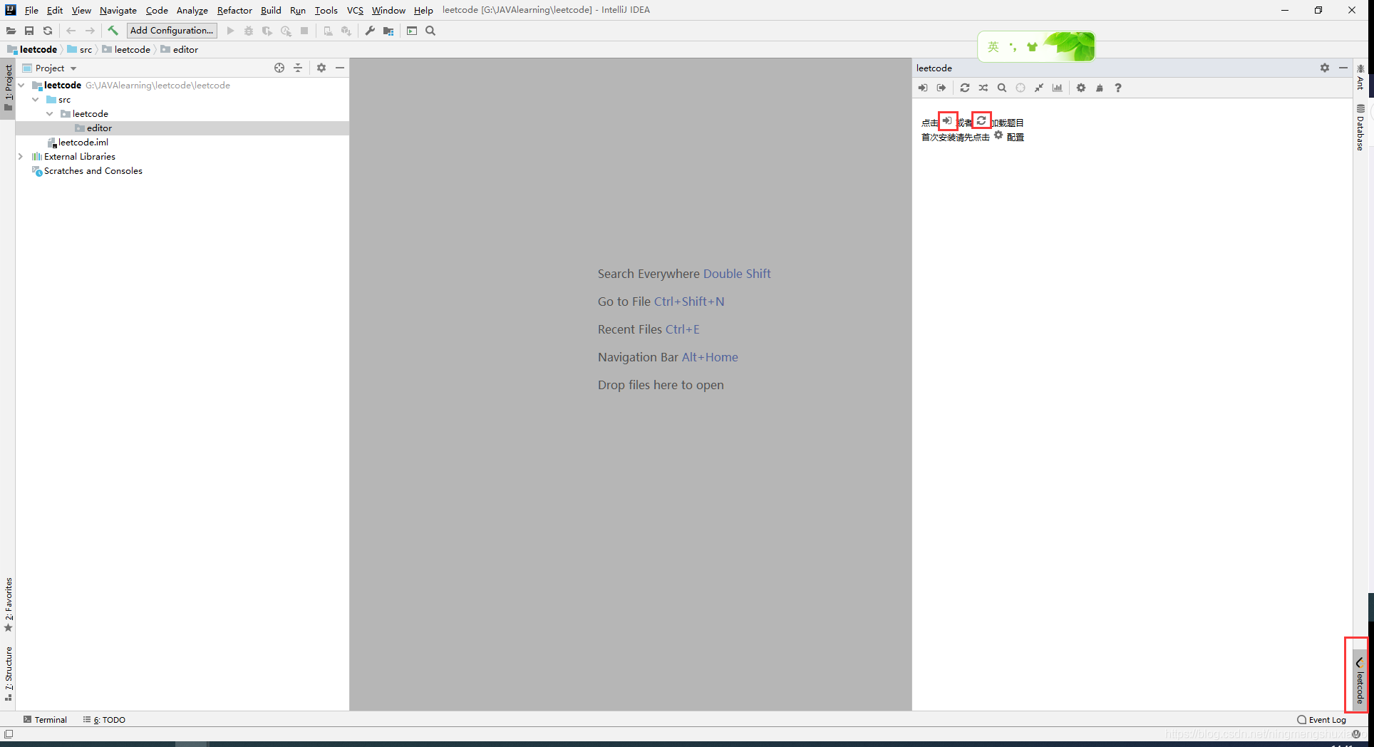 配置完成之后,在IEDA的右下角有一个Leetcode的菜单,打开会显示同步你网站上的刷题菜单。