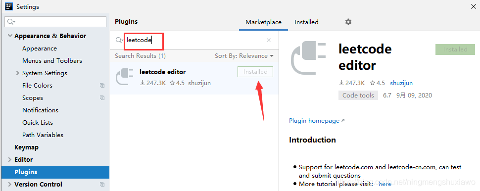 搜索leetcode点击安装
