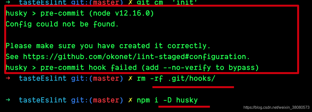 1.一个是使用husky之前需要git init一下,如果删除了项目中的.git文件夹,虽然此时已近安装过了husky,在重新git init之后依然需要重新安装一下husky否则继承不了git的钩子,就不work