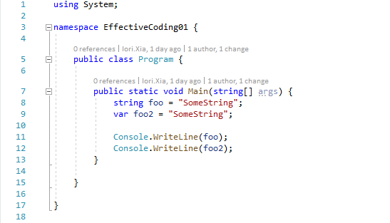 情况有所好转,意思也更清楚。结合语义上下文,var的类型不言自明。但是在这种情况下,我依然建议大家将代码改为以下形式:
