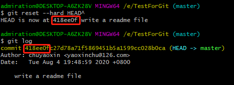 PS:通过这张图也能看出,最新的版本号显示在最上方git reset --hard HEAD