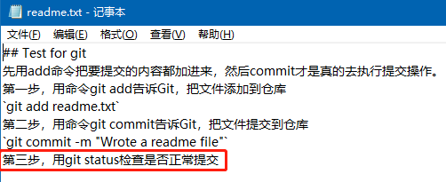 比如我先在readme.txt中添加了一行,然后git add readme.txt