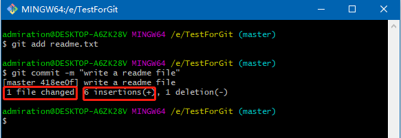 执行成功后,从图中可以看出,一个文件被改动,插入了6行内容。