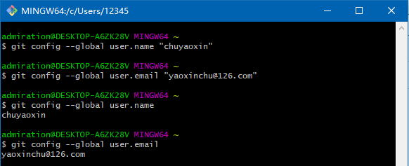设置使用Git时的姓名和邮箱地址。名字须用英文输入