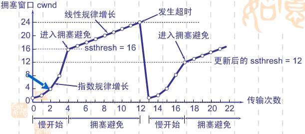 TCP在建立连接开始的时候,会进行慢启动,数据窗口会逐渐指数变大,在达到阈值后会线性增长。当发生某次超时之后,会迅速减小窗口到最小,重新开始慢启动,通知减小之前的阈值。